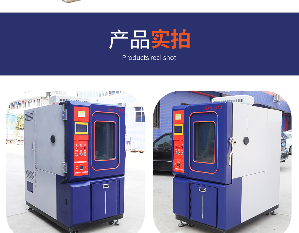 產品型號:JQESS-100 品牌:劍 喬 用途:快速溫變試驗箱主要用來測試各種材料耐熱、耐寒、耐干、耐濕的性能。本機采用中英文顯示彩色觸控式屏幕畫面,操作簡單,程序編輯容易,可顯示完整的系統操作狀況相關數據、執咨詢熱線:13829135130