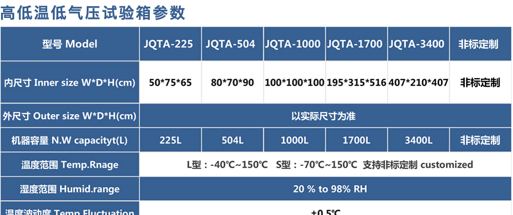 產(chǎn)品型號:JQTA-504 品牌:劍 喬 用途:高低溫低氣壓試驗箱,簡稱低氣壓試驗機、低氣壓(高度)試驗箱、高低溫濕熱低氣壓試驗箱,適用于電工、電子產(chǎn)品及其他產(chǎn)品、零部件及材料進行低氣壓試驗的環(huán)境試驗箱設備,可滿足電工咨詢熱線:13829135130