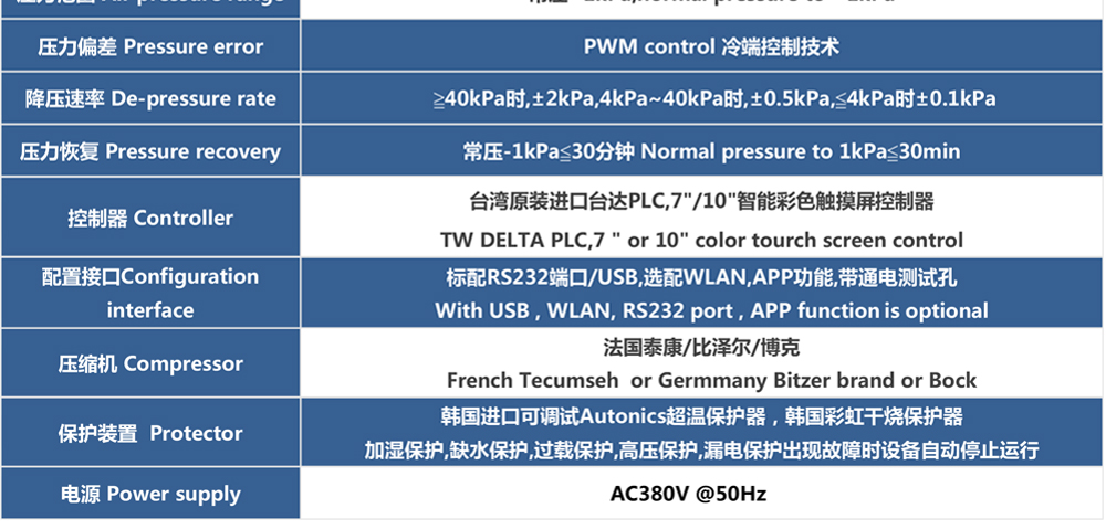 3.外部壓力型框體結(jié)構和不銹鋼水箱設計,合理的空氣循環(huán)系統(tǒng)和科學布局的加熱、制冷系統(tǒng)。
